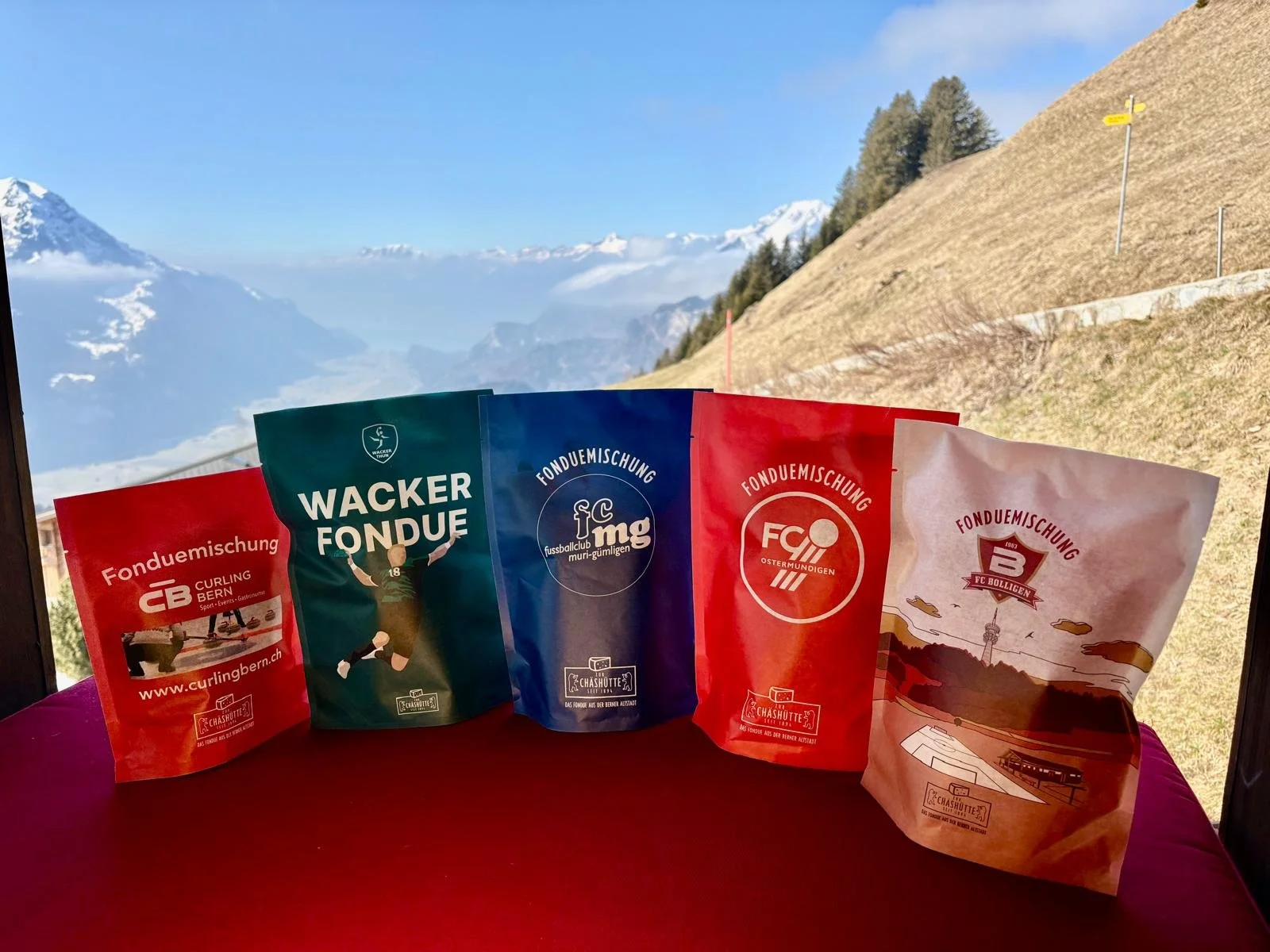 Wir gestalten “Pop-up-Stores” in den Farben des Vereins und vermitteln auf Wunsch auch Produktpartner, die ihre Produkte (wie etwa die “Chäshütte” aus Bern) auch in den Vereinsfarben zur Verfügung stellen können.